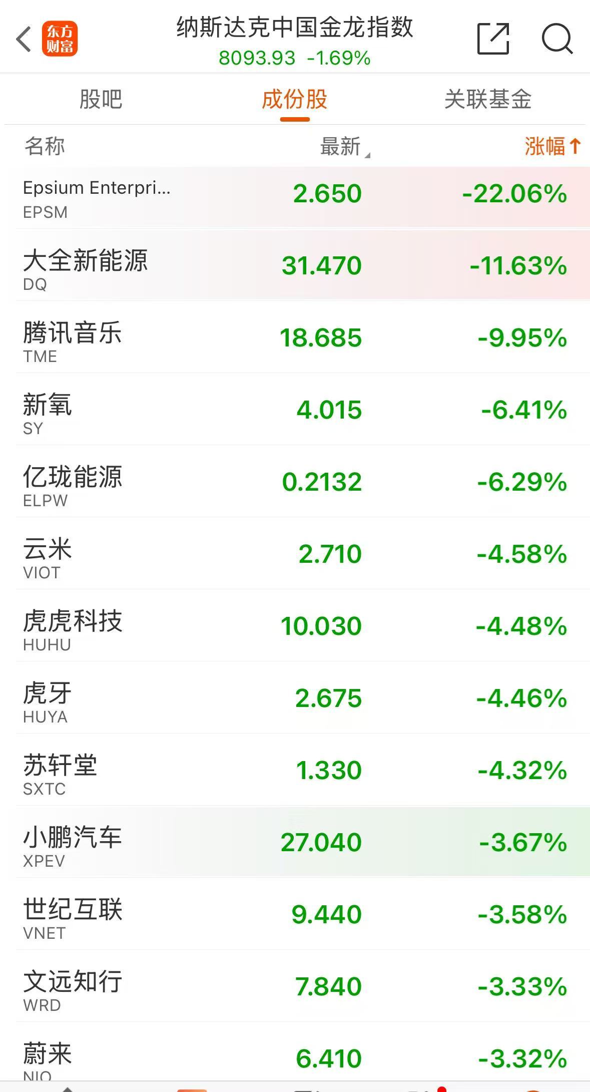 中概股则陷入调整,纳斯达克中国金龙指数跌1.69%。个股方面,腾讯音乐跌超9%,大全新能源跌逾11%。