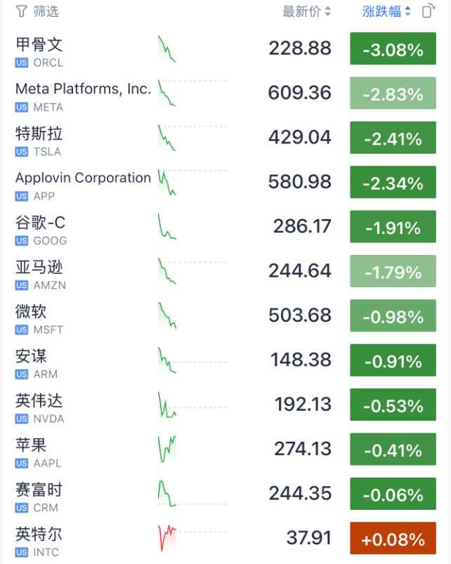 尽管AMD表现强劲,但其他科技股则面临一定压力。英伟达回吐了当日早些时候的涨幅——此前其供应商富士康报告盈利同比增长17%曾提振英伟达走高。周二,英伟达与AMD均遭遇下挫,分别下跌约3%和逾2%。包括甲骨文在内的个股前一交易日走弱,反映出投资者对科技股在近期飙升后估值可能偏高的担忧。