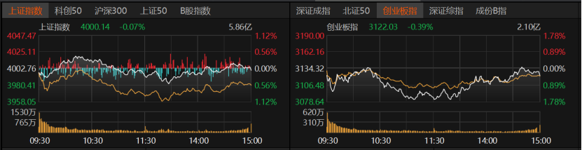 截至收盘,沪指险守4000点,两市3563只个股收跌。盘面上,家电、银行等传统股表现不错,但电力设备、计算机等科技股仍低迷。