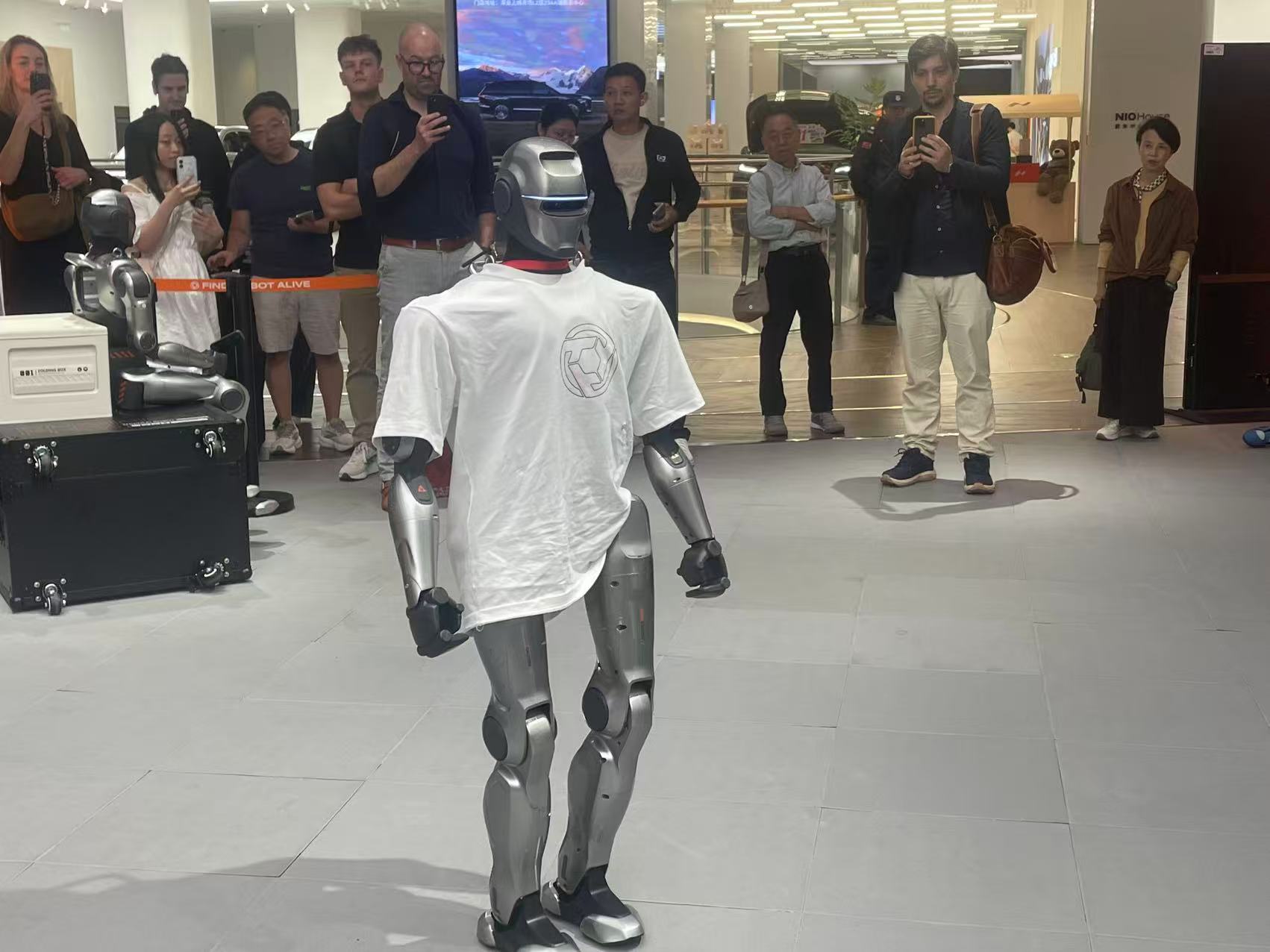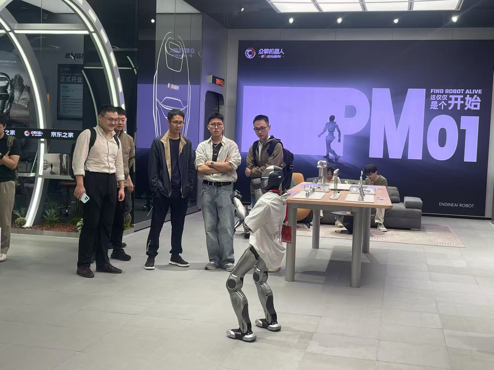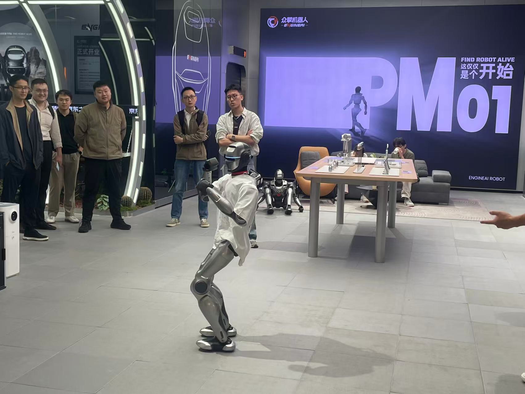 如今,主角“擎小展”(众擎PM01型号)自如地行走于顾客之间,不仅能对话交流,还随时展示着它的灵活身手:表演一段节奏感十足的“斧头舞”,或是进行有力的拳击、踢腿展示。吸引了很多深圳市民,以及国外游客驻足观看。