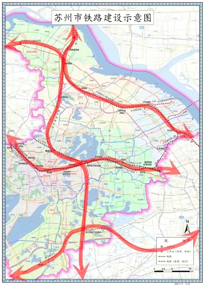 目前,苏州共规划铁路总里程约1106公里(其中,国铁里程约678公里)。已建成铁路7条,共约476.5公里,高铁覆盖所有县级市。按计划,到2027年,苏州“丰”字形铁路网主骨架基本建成。