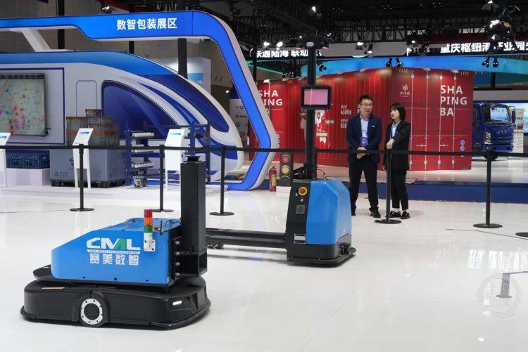 西部陆海新通道、中欧班列上运用的不少智能装备纷纷亮相。展会上,不仅有最大载重300公斤的驼峰500系列重载无人机、仿生人形机器人,还有专为智能网联新能源汽车打造的潜伏顶升AGV、无人驾驶牵引车等。