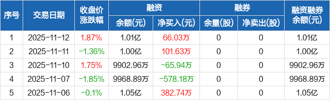 博实结:融资净买入66.03万元,融资余额1.01亿元(11-12)
