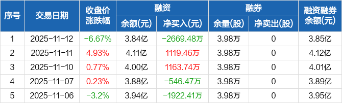 凯美特气:融资净偿还2669.48万元,融资余额3.84亿元(11-12)