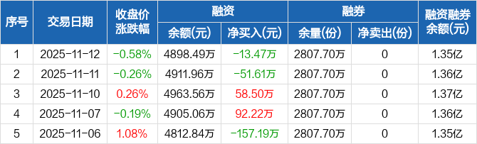 1000ETF:融资净偿还13.47万元,融资余额4898.49万元(11-12)