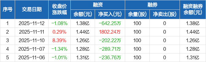 君逸数码:融资净偿还642.25万元,融资余额1.38亿元(11-12)