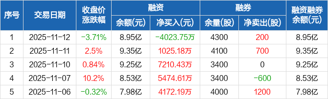 德方纳米:融资净偿还4023.75万元,融资余额8.95亿元(11-12)