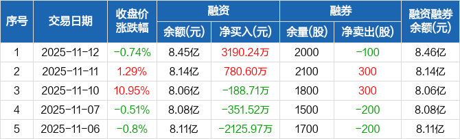 帝科股份:融资净买入3190.24万元,融资余额8.45亿元(11-12)