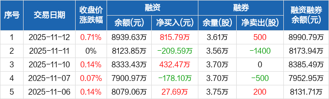 顺控发展:融资净买入815.79万元,融资余额8939.63万元(11-12)