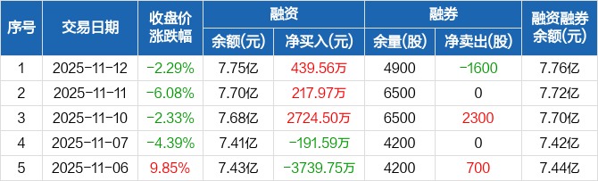 欧陆通融资融券信息显示,2025年11月12日融资净买入439.56万元;融资余额7.75亿元,较前一日增加0.57%