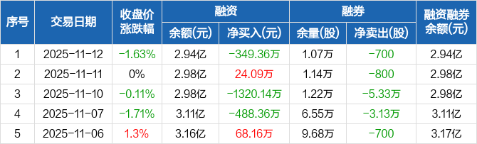 三丰智能:融资净偿还349.36万元,融资余额2.94亿元(11-12)