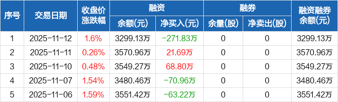 万得凯:融资净偿还271.83万元,融资余额3299.13万元(11-12)