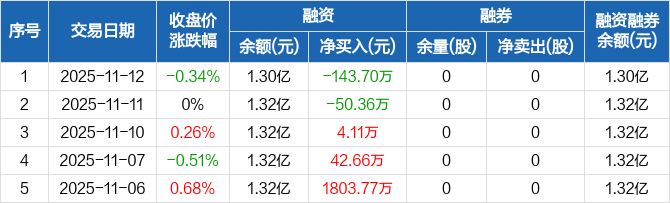 华新环保:融资净偿还143.7万元,融资余额1.3亿元(11-12)
