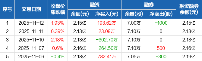 科顺股份:融资净买入193.62万元,融资余额2.15亿元(11-12)