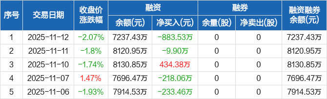 欣灵电气:融资净偿还883.53万元,融资余额7237.43万元(11-12)