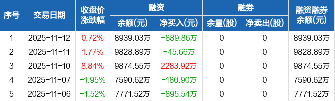 品渥食品:融资净偿还889.86万元,融资余额8939.03万元(11-12)