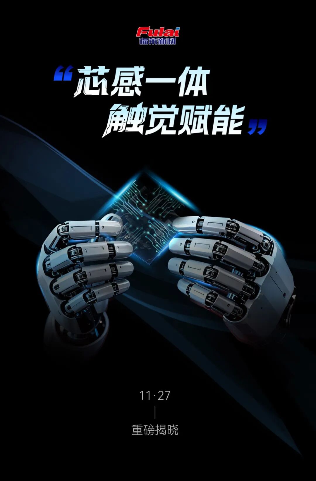 11月12日,福莱新材旗下账号“福莱柔性传感”发布新品预告,主题为“芯感一体,触觉赋能”,海报主体为一款植入芯片的电子皮肤,新品发布时间是11月27日。