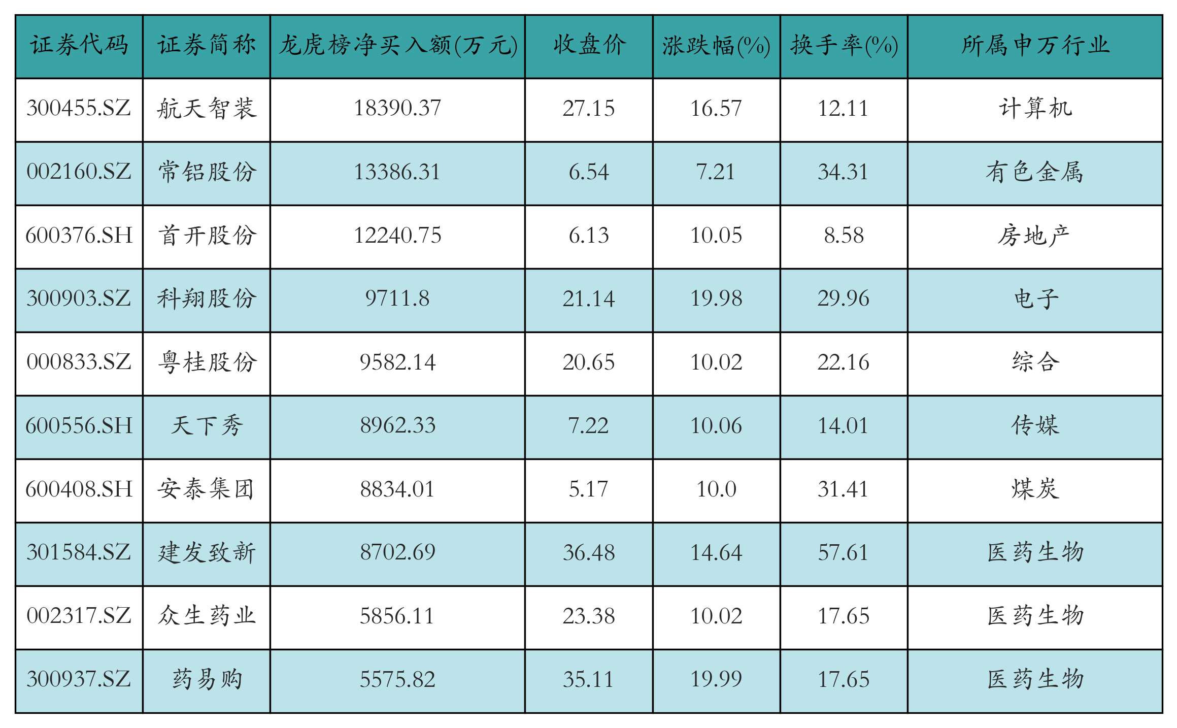 昨日龙虎榜营业部净买入额前10详情见下表: