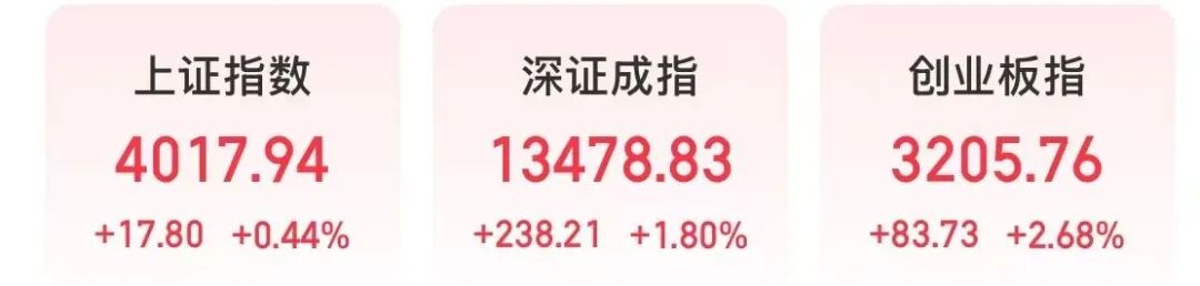 截至上午收盘,上证指数上涨0.44%,深证成指上涨1.8%,创业板指上涨2.68%。