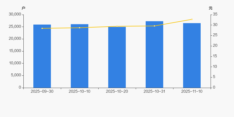 2025年9月30日至今,公司股东户数有所增长,区间涨幅为2.28%。2025年9月30日至2025年11月10日区间股价上涨15.16%。