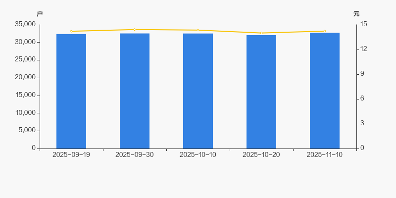 2025年9月19日至今,公司股东户数有所增长,区间涨幅为1.11%。2025年9月19日至2025年11月10日区间股价上涨0.14%。