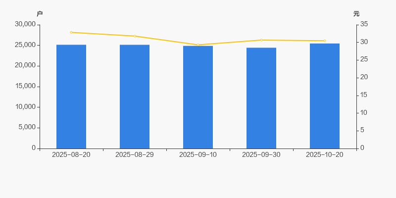 2025年8月20日至今,公司股东户数有所增长,区间涨幅为1.24%。2025年8月20日至2025年10月20日区间股价下降7.22%。