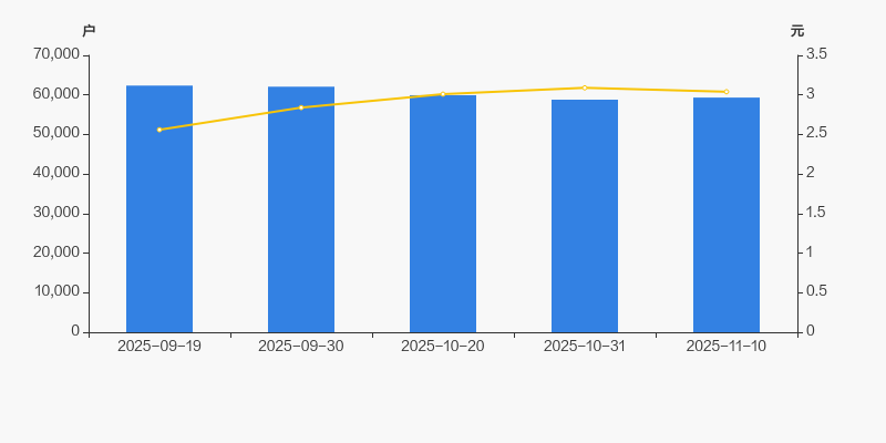 截至2025年11月10日,公司最新总股本为19.97亿股,其中流通股本为19.61亿股。户均持有流通股数量由上期的3.34万股下降至3.31万股,户均流通市值10.05万元。