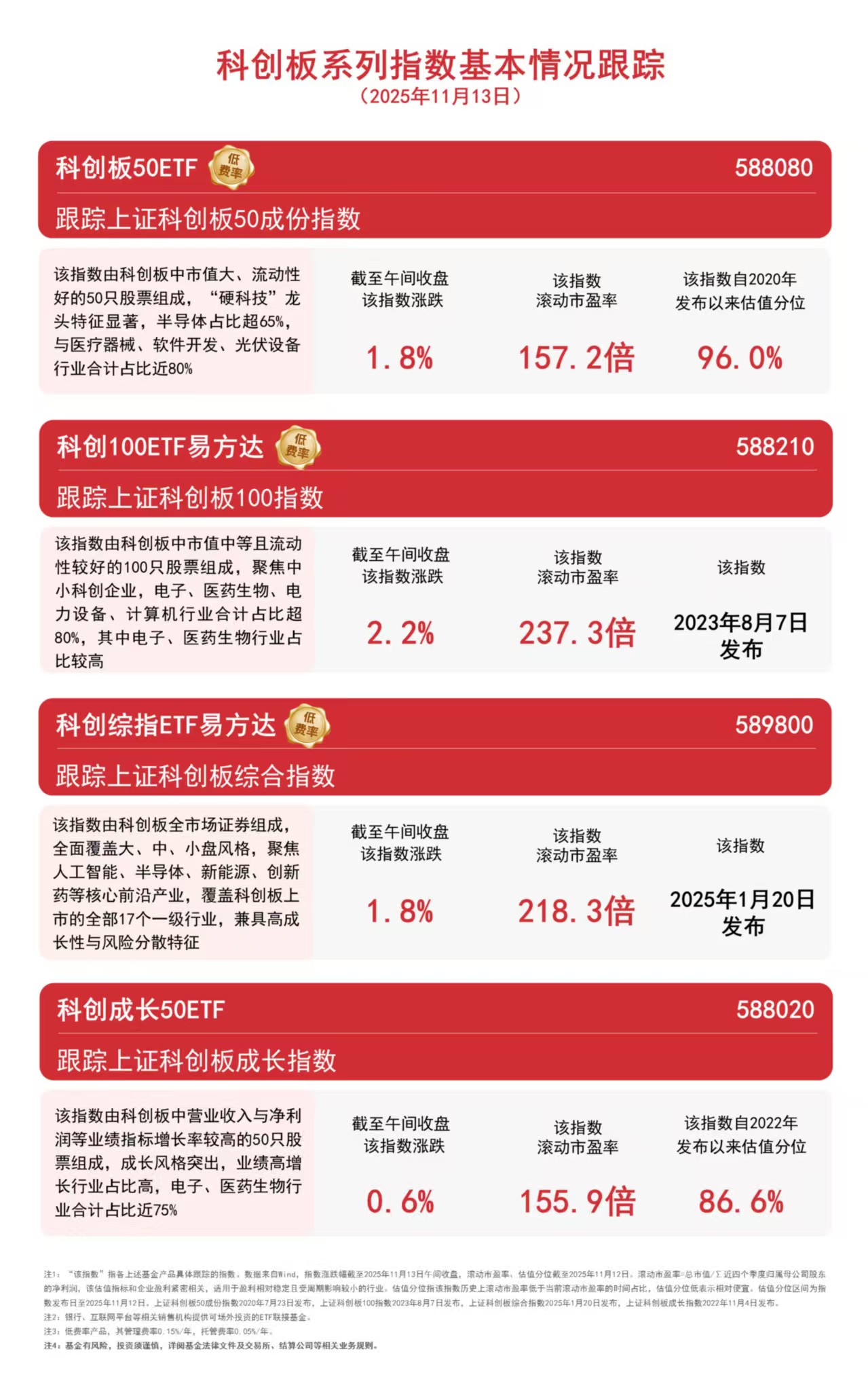 今日早盘,半导体、新能源板块全线走强,个股层面,佰维存储涨超15%,天能股份涨超7%,芯原股份涨超6%,截至午间收盘,科创100指数上涨2.2%,科创板50指数、科创综指均上涨1.8%,科创成长指数上涨0.6%。Wind数据显示,科创板50ETF(588080)最新规模超700亿元,位居科创板相关ETF前列。