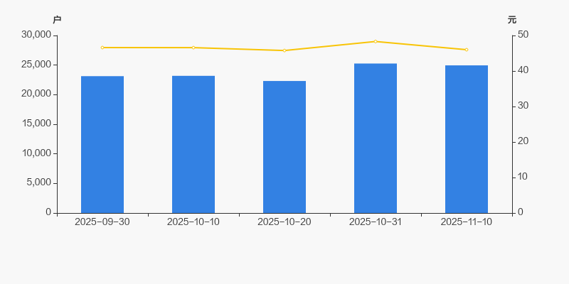 截至2025年11月10日,公司最新总股本为2.28亿股,且均为流通股。户均持有流通股数量由上期的9019股上升至9131股,户均流通市值42万元。