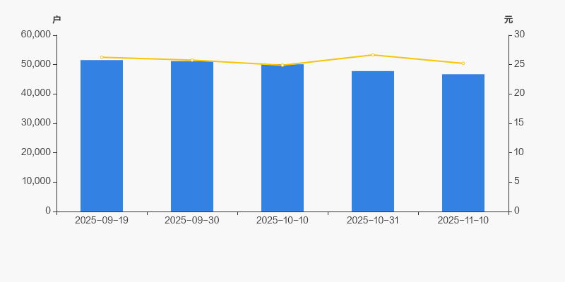 2025年9月19日至今,公司股东户数有所下降,区间跌幅为9.33%。2025年9月19日至2025年11月10日区间股价下降3.96%。