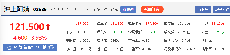 港股异动 | 沪上阿姨盘中一度涨超12% 周内累计涨近50%