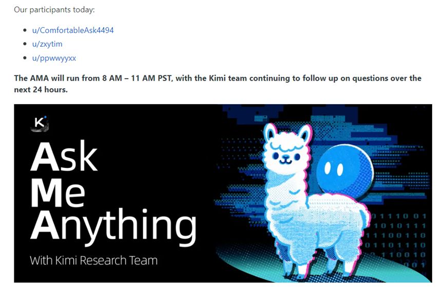 北京时间11月11日凌晨,月之暗面创始人杨植麟与联合创始人周昕宇、吴育昕在知名论坛Reddit集体上线。在这个全球技术极客聚集地,三位首次同时露面,就上周发布的K2 Thinking模型开启了一场长达数小时的线上AMA(线上问答)。