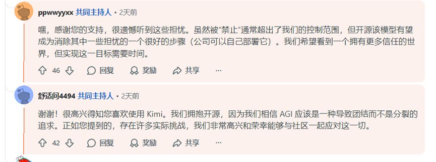 本次问答中,一位海外用户分享了他的两难处境:其公司虽然认可Kimi模型的出色能力,但因其为“中国大模型”,出于潜在风险考量,不敢在生产环境中部署。