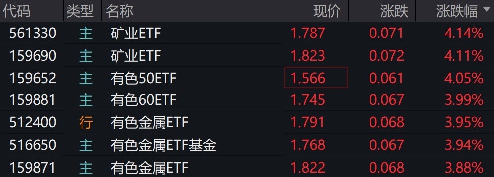 有色金属概念股走强 矿业、有色相关ETF涨约4%
