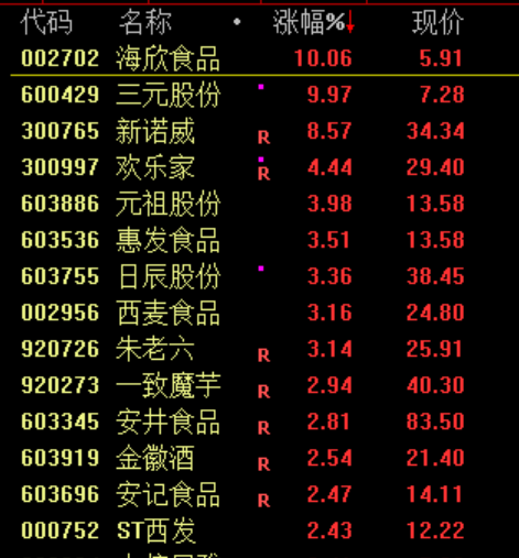 食品等消费股继续活跃,三元股份、海欣食品等涨停。