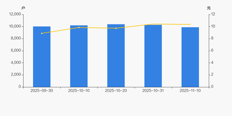 2025年9月30日至今,公司股东户数有所下降,区间跌幅为1.32%。2025年9月30日至2025年11月10日区间股价上涨16.67%。