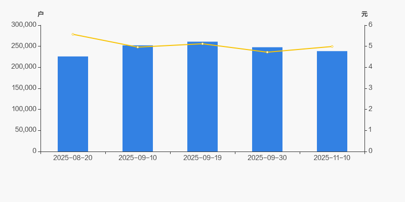 2025年8月20日至今,公司股东户数有所增长,区间涨幅为5.57%。2025年8月20日至2025年11月10日区间股价下降10.41%。