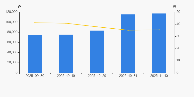 自2025年9月30日以来,公司股东户数连续4期上涨,截至目前增幅为57.32%。2025年9月30日至2025年11月10日区间股价下降14.39%。