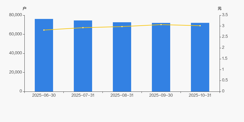 2025年6月30日至今,公司股东户数有所下降,区间跌幅为5.37%。2025年6月30日至2025年10月31日区间股价上涨7.09%。