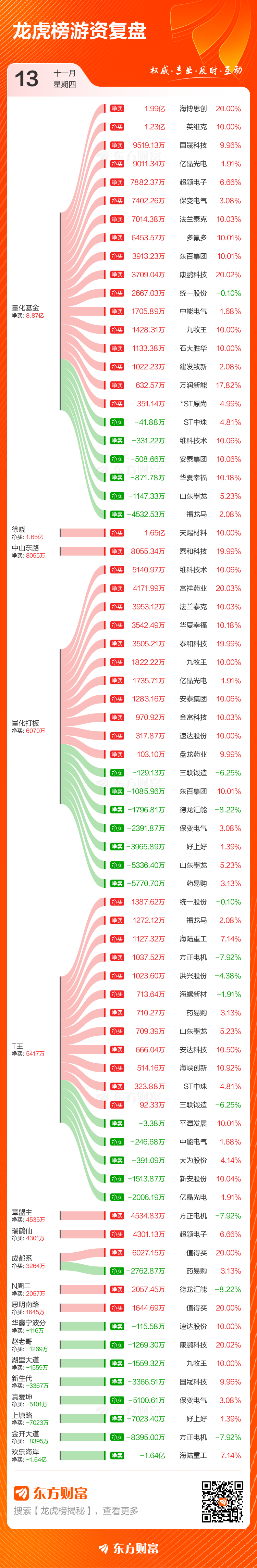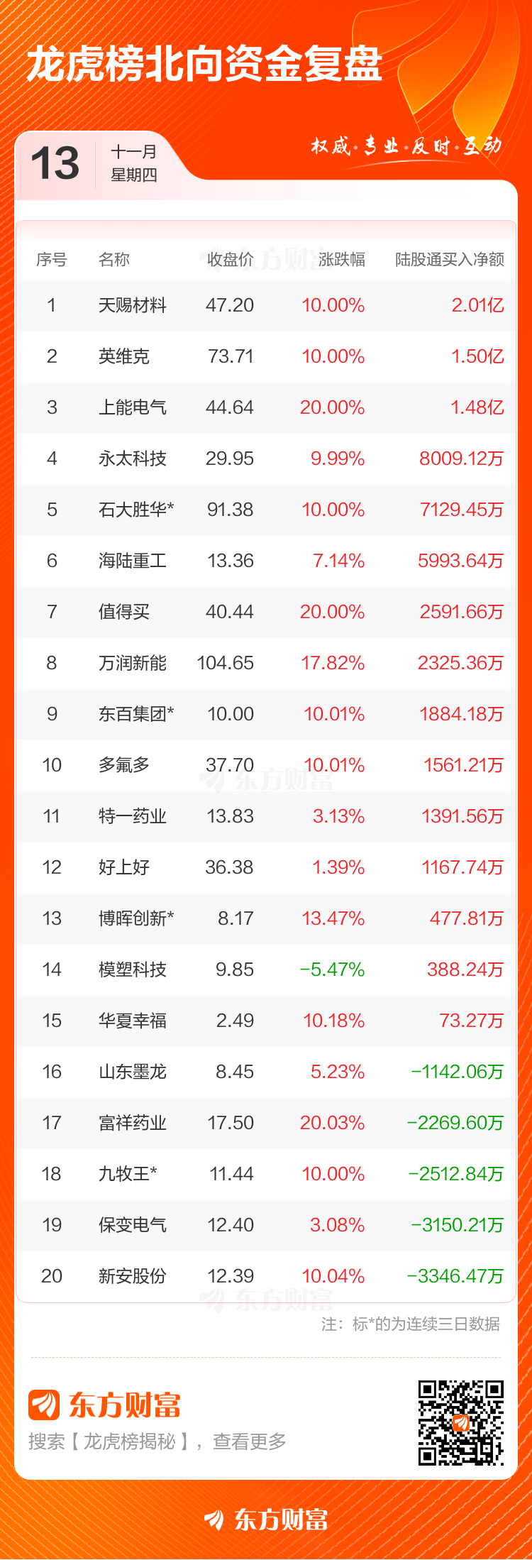 11月13日龙虎榜复盘:“徐晓”1.65亿元净买入天赐材料