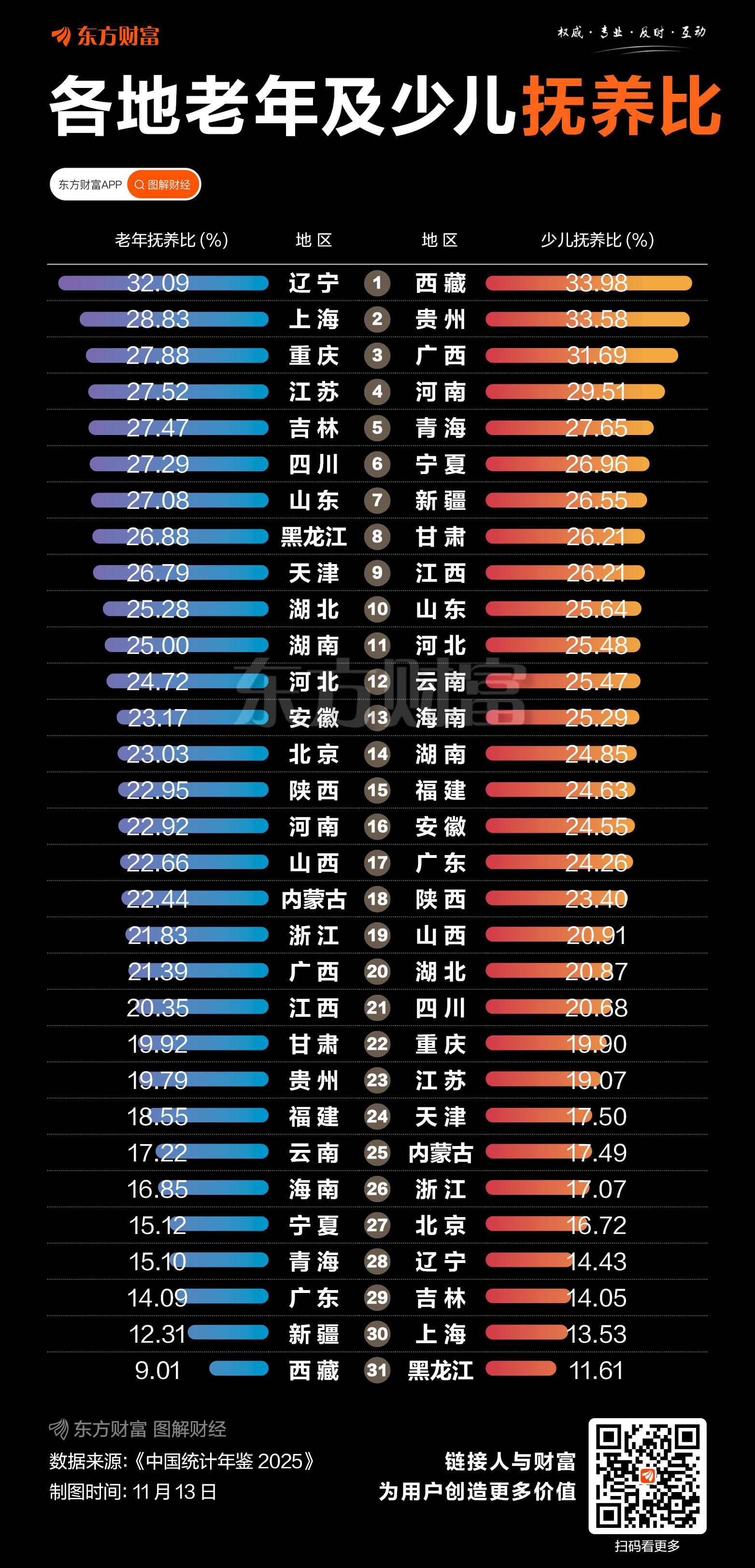 31省市抚养比出炉 5省超50% 广东最低