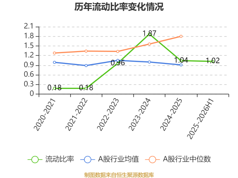 报告期内,公司流动比率为1.02,速动比率为0.18。