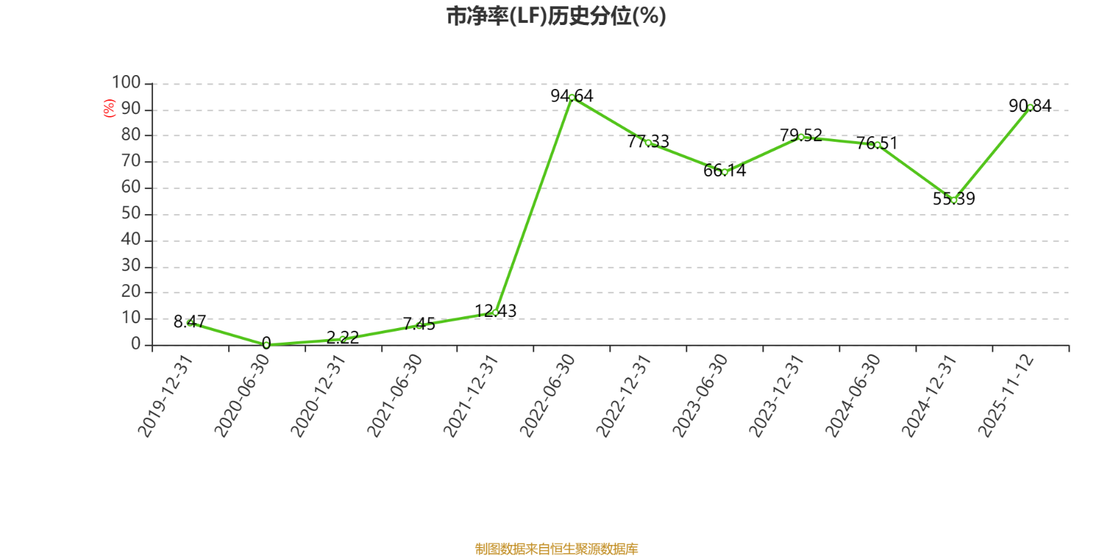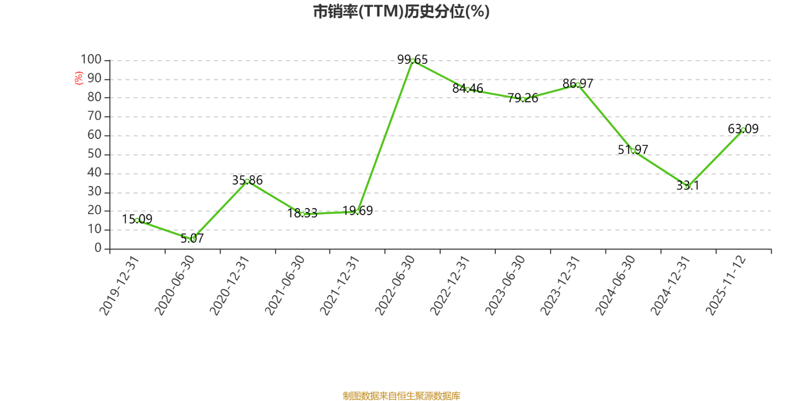 以11月12日收盘价计算,大唐黄金目前市盈率(TTM)约48.96倍,市净率(TTM)约6.66倍,市销率(TTM)约2.49倍。