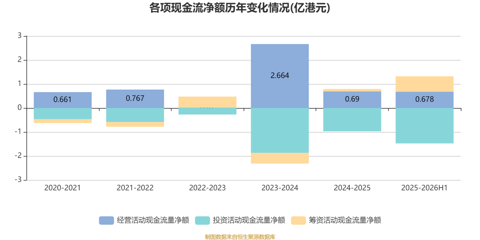 报告期内,公司经营活动现金流净额为6775.5万港元;筹资活动现金流净额6436.4万港元;投资活动现金流净额-1.48亿港元。