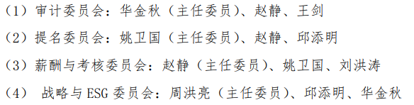 董事会下设审计委员会、提名委员会、薪酬与考核委员会和战略与ESG委员会等4个专门委员会,具体表现如下: