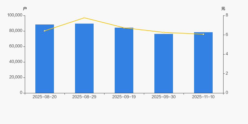 2025年8月20日至今,公司股东户数显著下降,区间跌幅为11.28%。2025年8月20日至2025年11月10日区间股价下降5.45%。