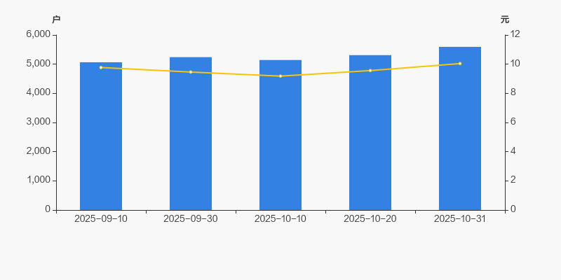 2025年9月10日至今,公司股东户数显著增长,区间涨幅为10.44%。2025年9月10日至2025年10月31日区间股价上涨2.76%。