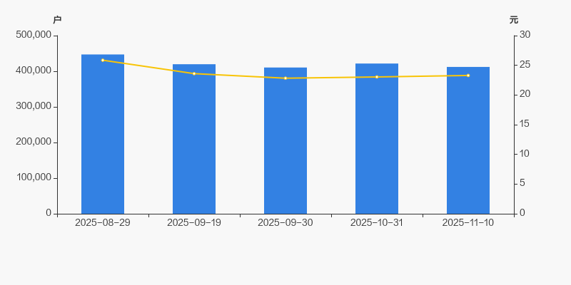 2025年8月29日至今,公司股东户数有所下降,区间跌幅为7.83%。2025年8月29日至2025年11月10日区间股价下降9.94%。