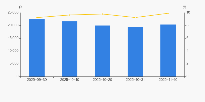 2025年9月30日至今,公司股东户数有所下降,区间跌幅为9.09%。2025年9月30日至2025年11月10日区间股价上涨7.36%。