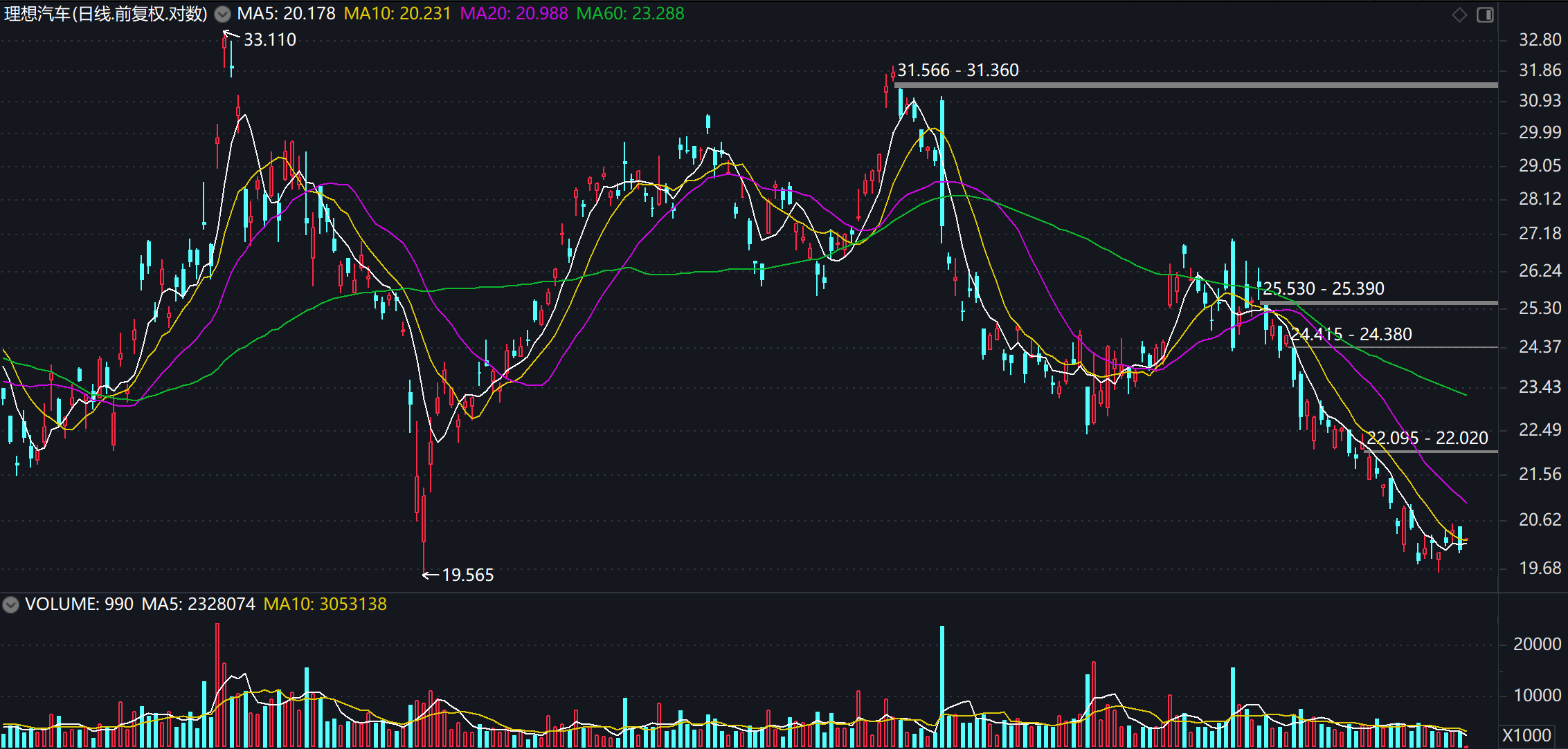 理想美股从年内高点33.11美元跌至19.8美元,跌幅40%;港股从138.3港元跌至79.6港元,跌幅42%。对投资者而言,理想不再是增长故事,而是一间被套牢的中年汽车厂。
